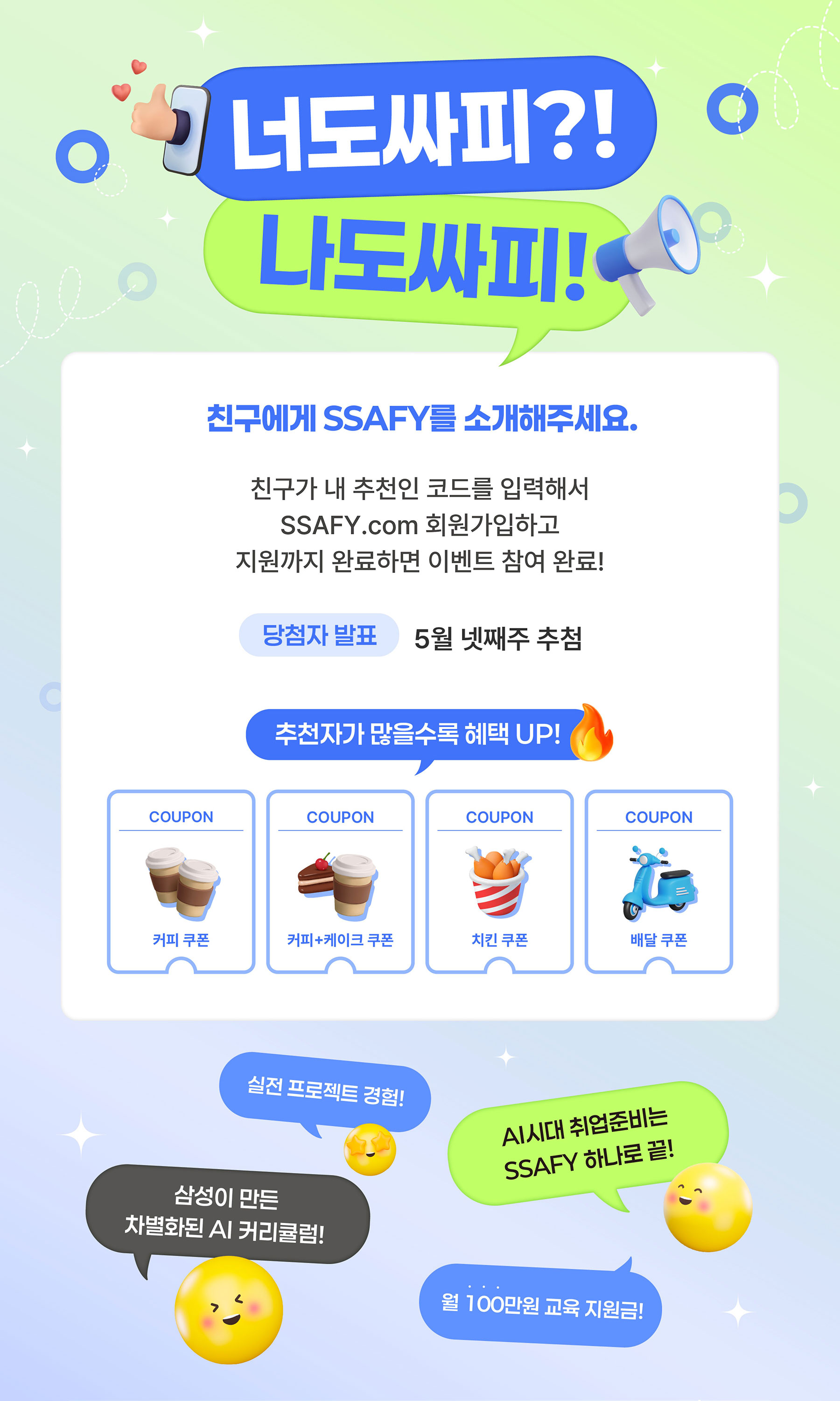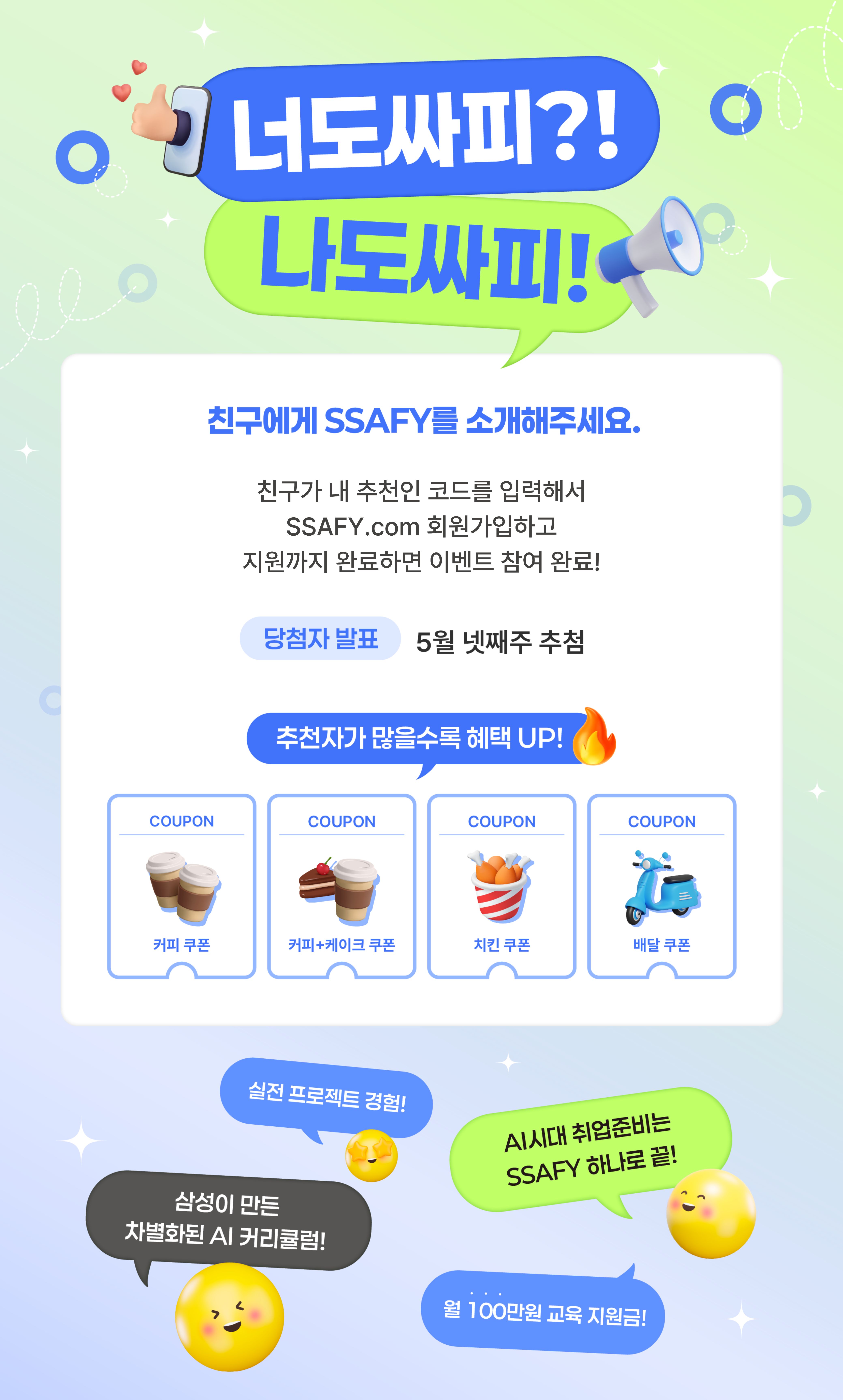 친구가 내 추천인 코드를 입력해서 SSAFY.com 회원가입하고 지원까지 완료하면 이벤트 참여 완료!